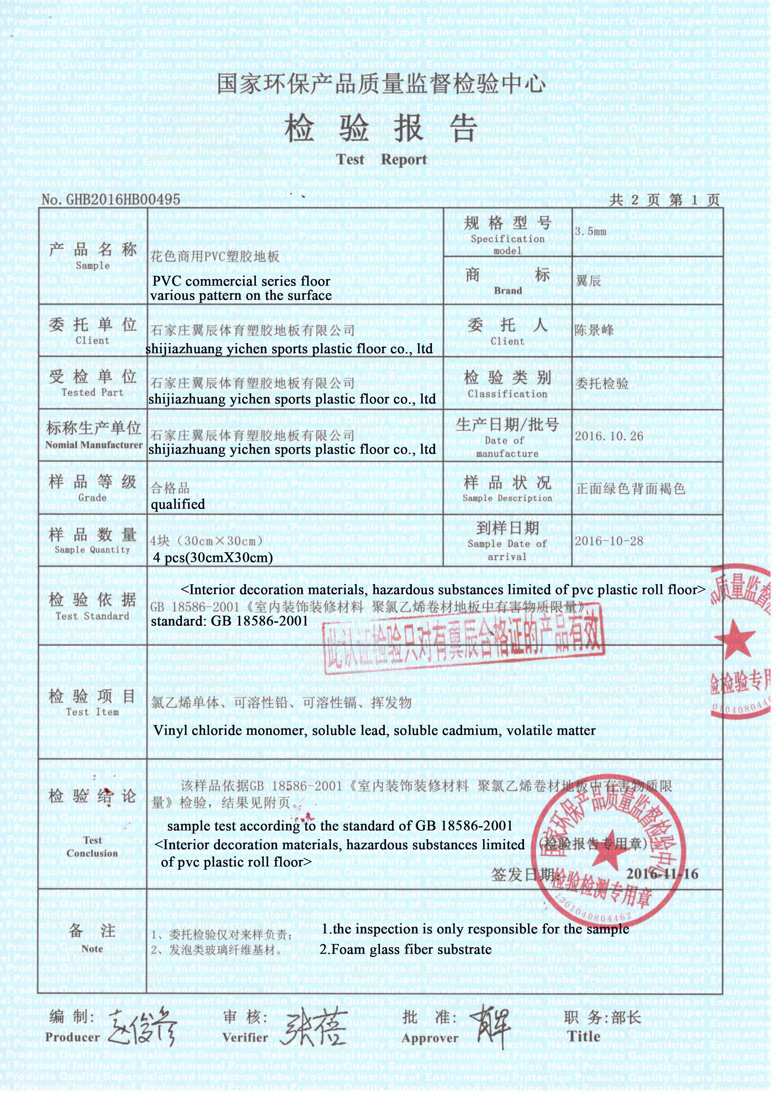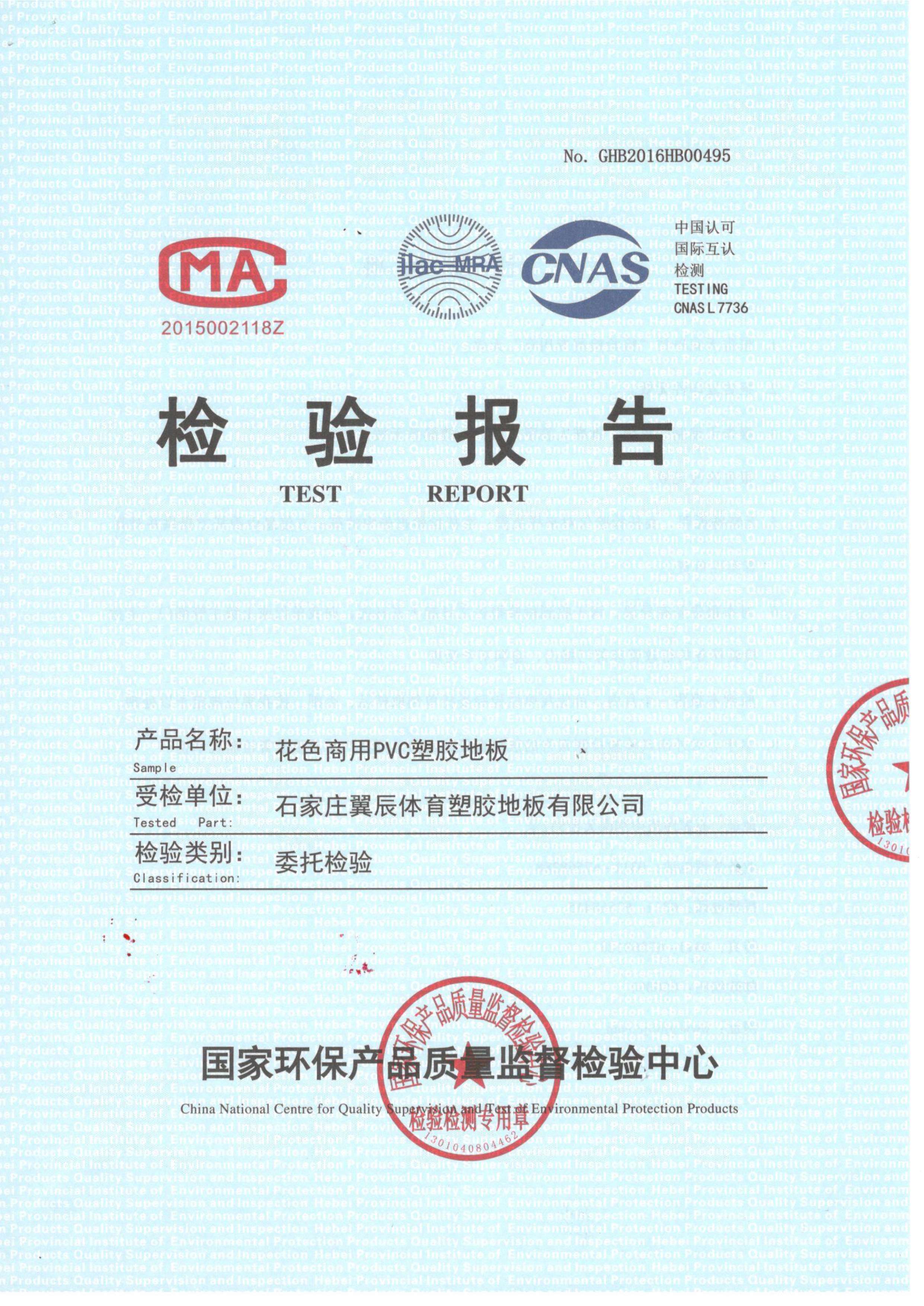 如沒特殊注明,文章轉載請注明來自“翼辰地板”商用PVC塑膠地板-國家環保產品質檢報告