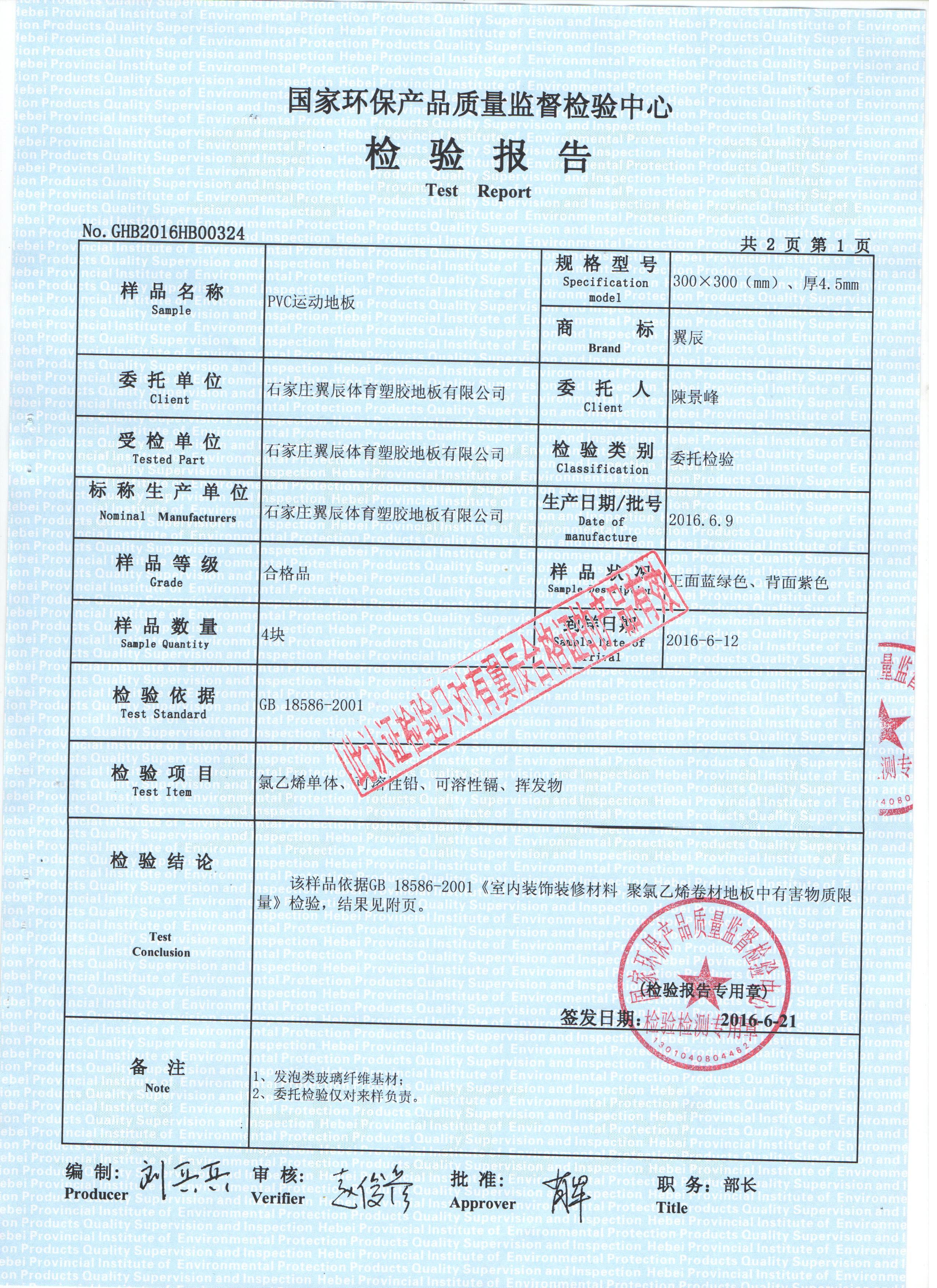 如沒特殊注明,文章轉載請注明來自“翼辰地板”PVC運動地板-國家環(huán)保產品質檢報告