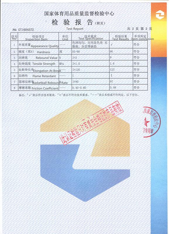 如沒特殊注明,文章轉載請注明來自“翼辰地板”PVC運動地板-國家體育用品質量檢驗報告